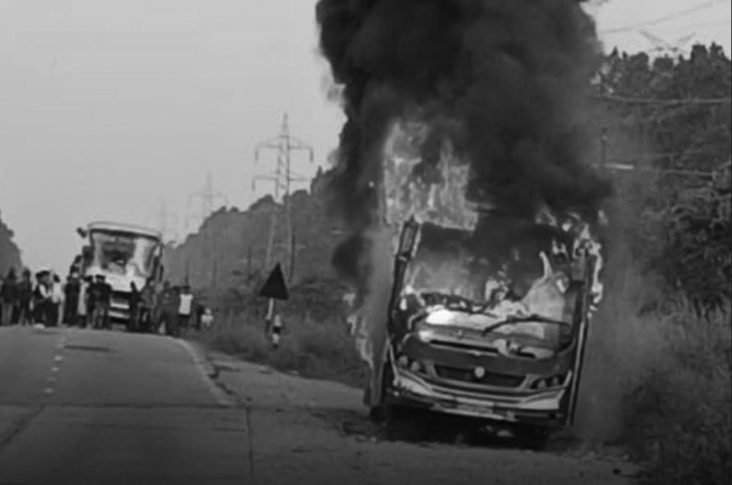 रौतहटमा गुडिरहेको यात्रुवाहक बसमा आगलागी
