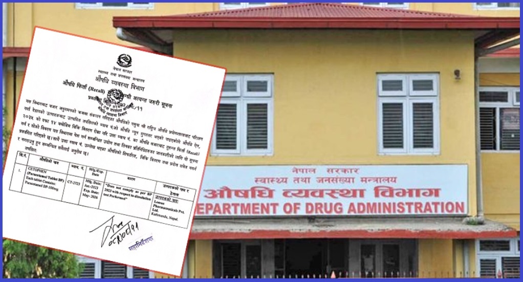 विभागले बजार अनुगमनका क्रममा विभिन्न कम्पनीका औषधिका नमुना संकलन गरी परीक्षण गरिने र मापदण्डविपरीत पाइएमा सम्बन्धित ब्याच रिकल गरिएको जनाएको छ ।