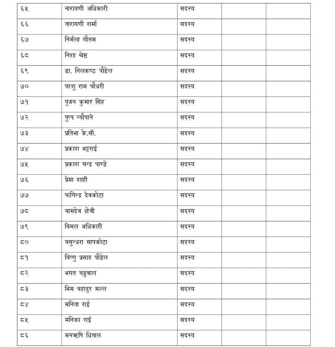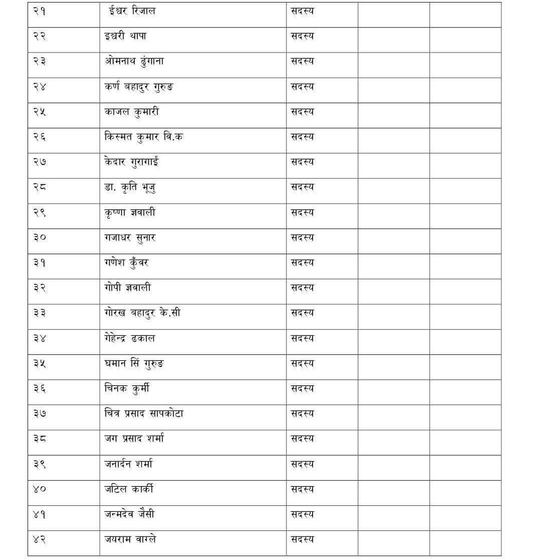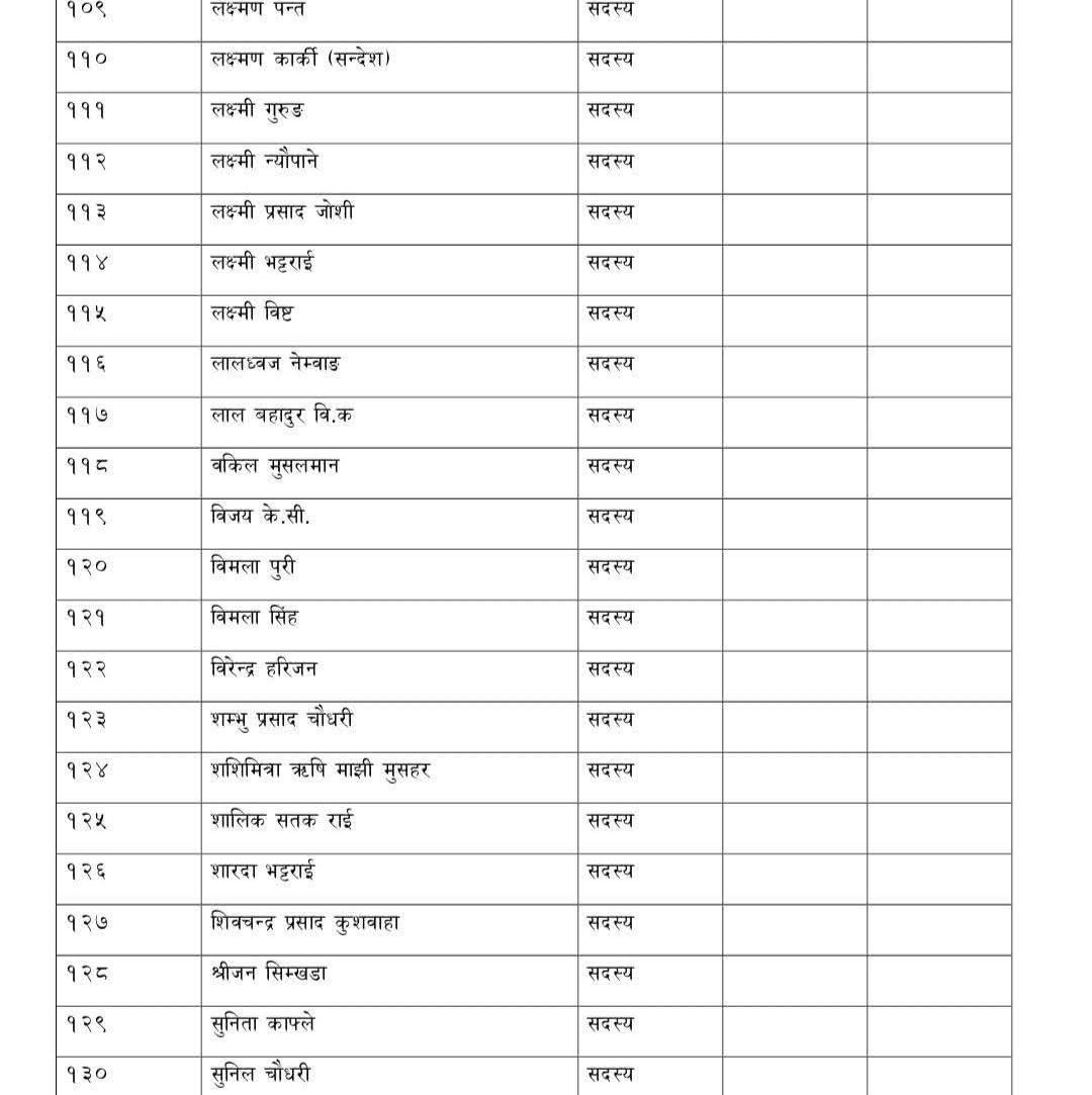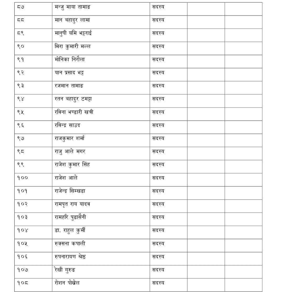 यस्तै ओम शर्मा, राजकुमार शर्मा, रजमान तामाङ, जन्मदेव जैसी, मानुषि यमि भट्टराईलगायतको पनि नाम छ । पूर्वप्रधानमन्त्री बाबुराम भट्टराईको भने नाम छैन । उनी संरक्षकको भूमिकामा रहने बताइएको छ ।