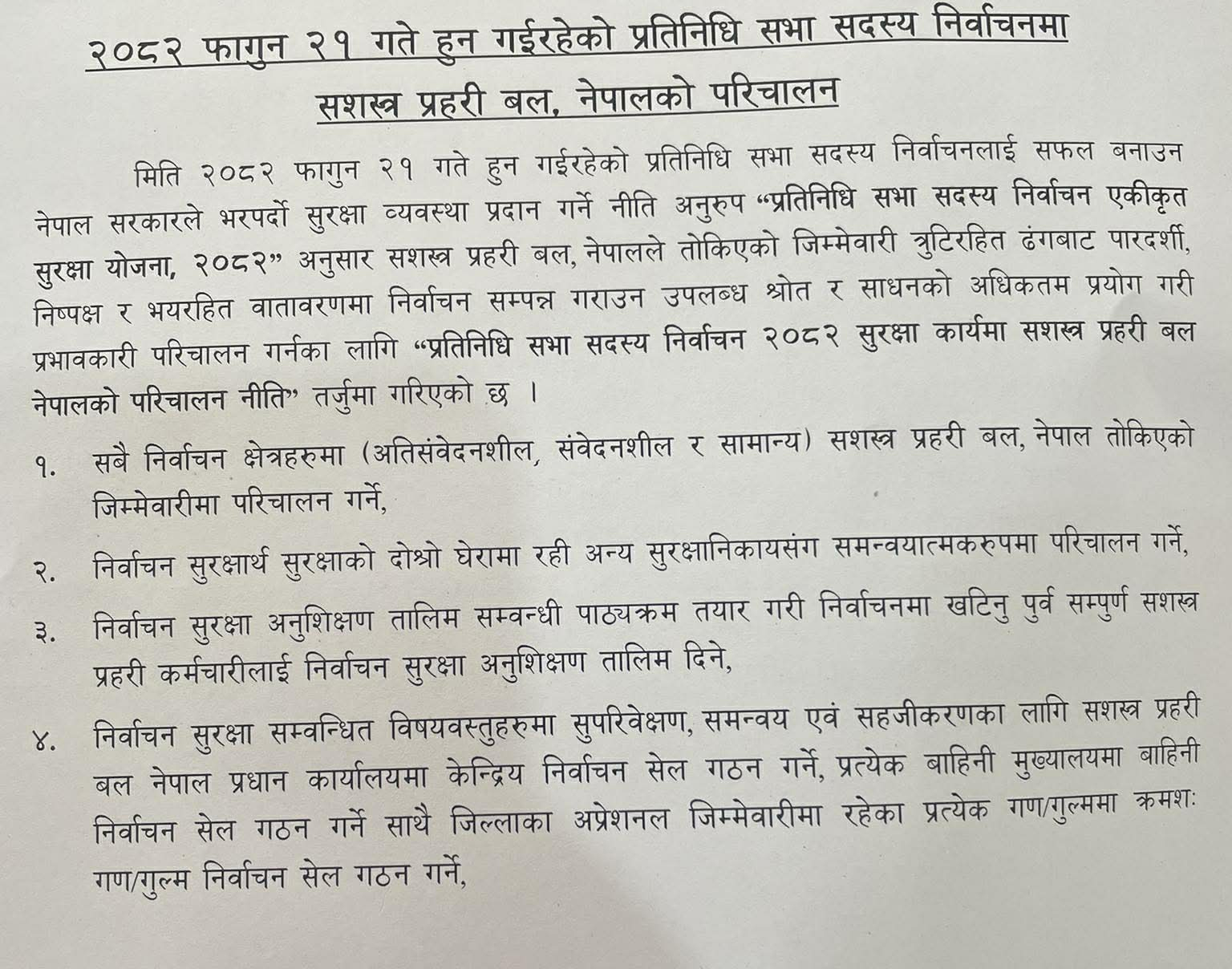 सशस्त्रले बनायो १७ बुँदे निर्वाचन परिचालन नीति