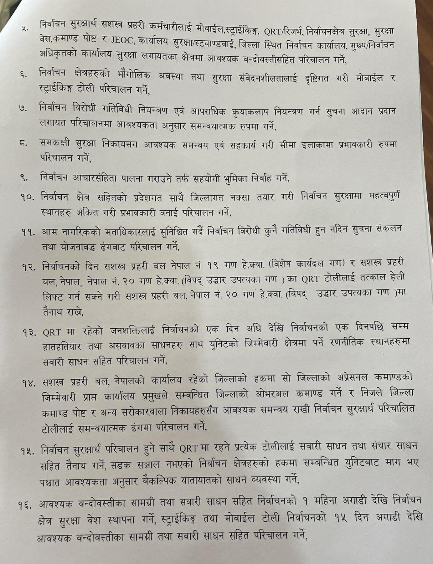 आगामी फागनु २१ गते हुने निर्वाचनका लागि १७ बुँदे ‘परिचालन नीति‘ तर्जुमा गरिएको सूचना अधिकारी एवं प्रवक्ता डीआईजी मनिष थापाले जानकारी दिए ।
