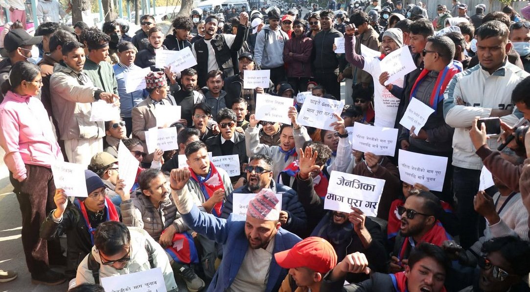 माइतीघर मण्डलामा आज पनि जेनजीहरुको विरोध प्रदर्शन जारी
